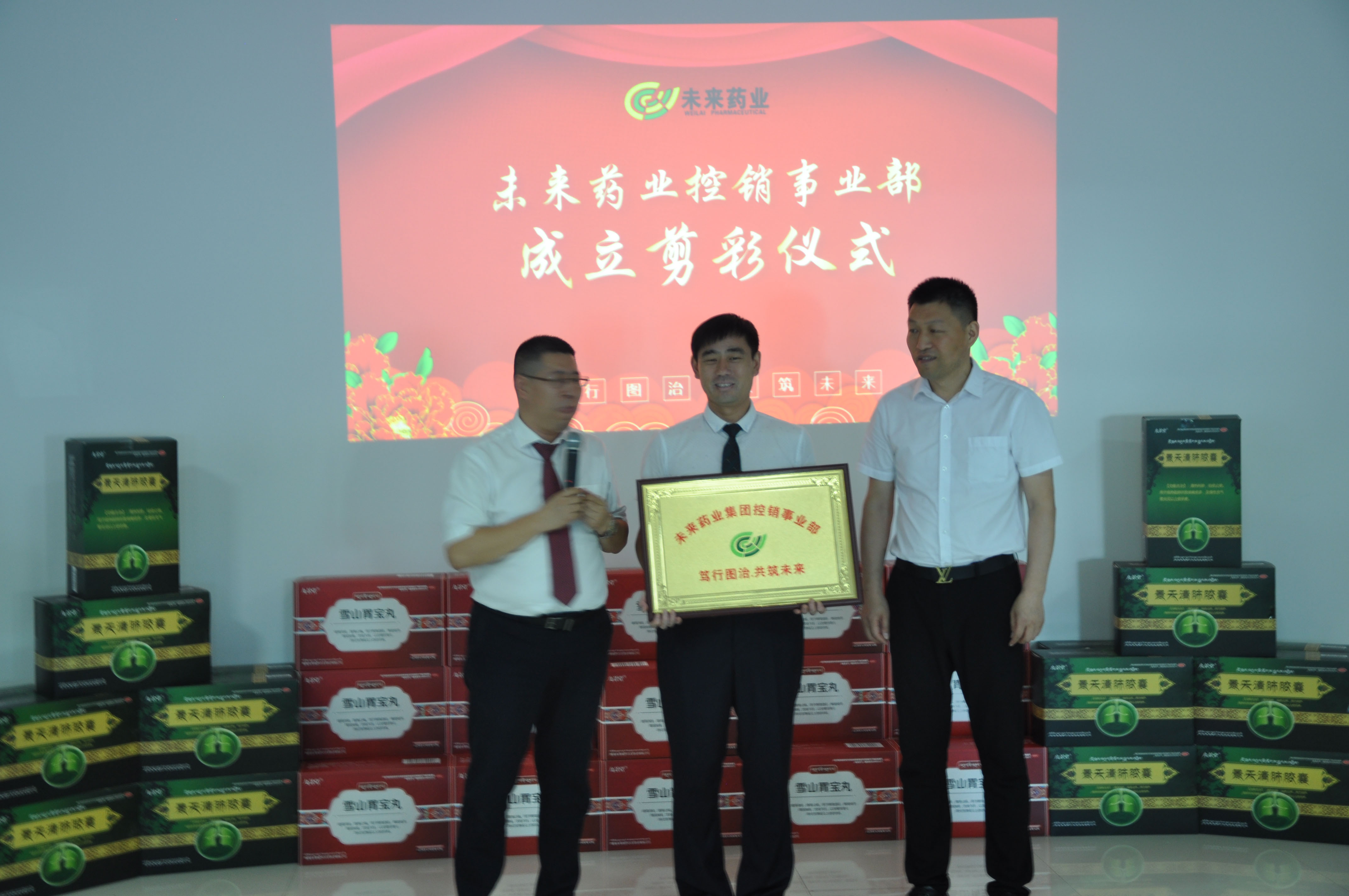 为加快景天清肺胶囊、雪山胃宝丸、四味雪莲花等产品的终端发展和推广,本次会议还召开了未来药业控销事业部成立剪彩仪式,并举行了誓师大会。